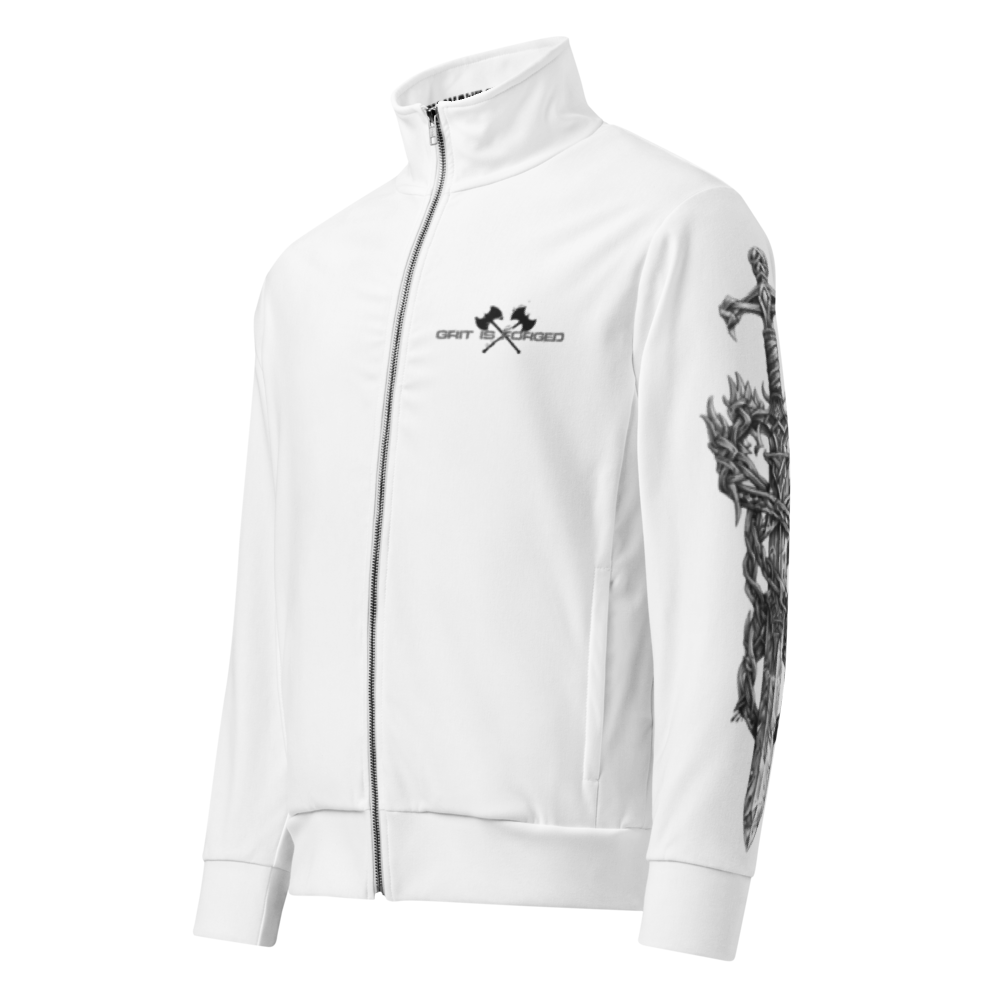 Each jacket features bold designs, like powerful mantras stitched into the inner collar and fierce graphics that inspire you to keep moving forward. With comfortable, high-quality materials and a fit that works for any challenge, the Forged Grit Track Jackets are built to endure the grind and make sure you stand strong, no matter the journey.